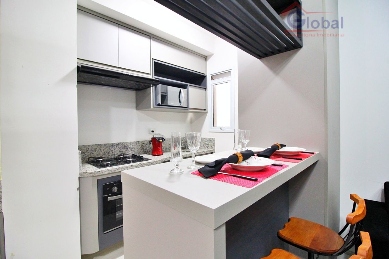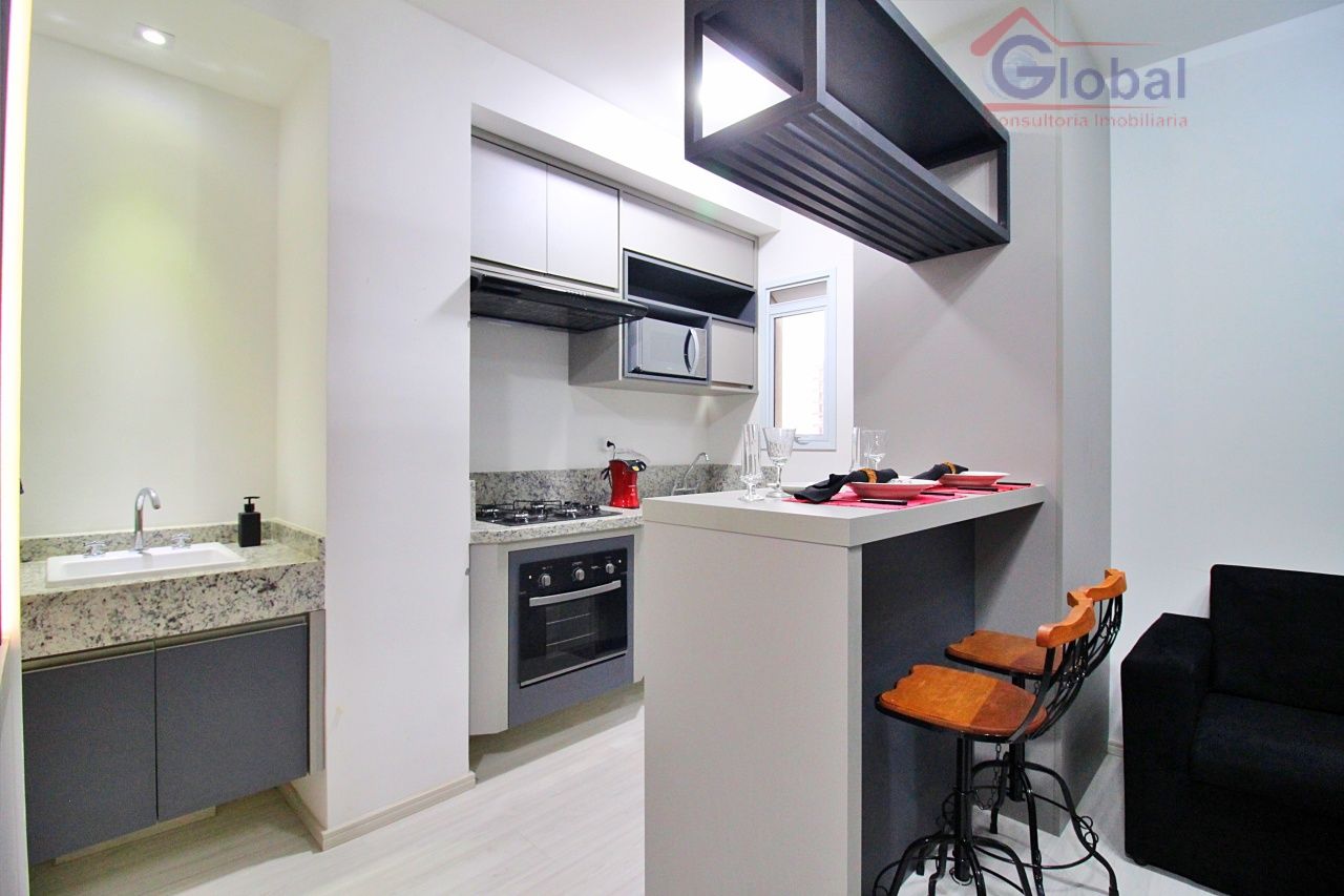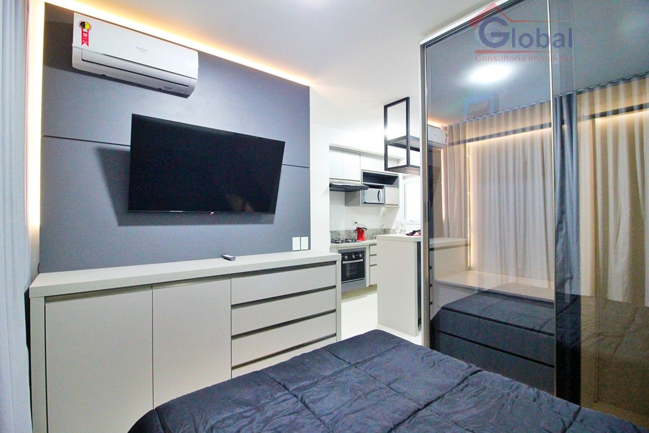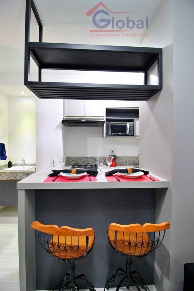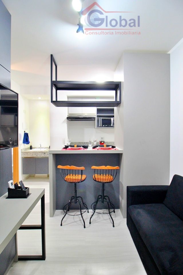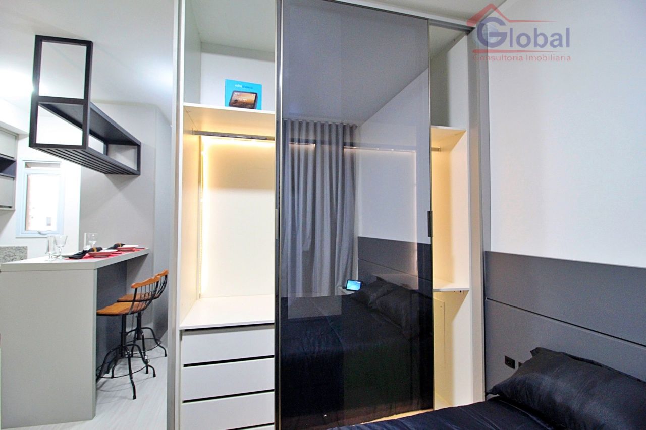 Loft mobiliado com armários embutidos no quarto, cozinha americana pl...