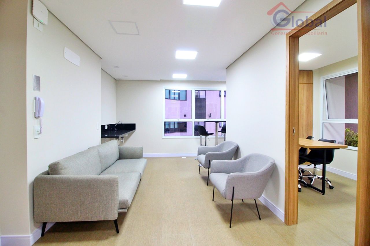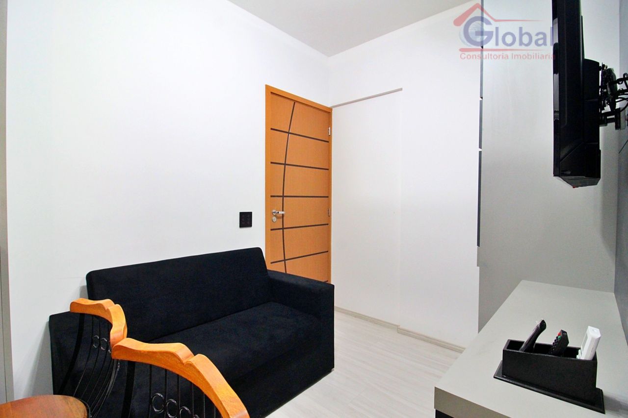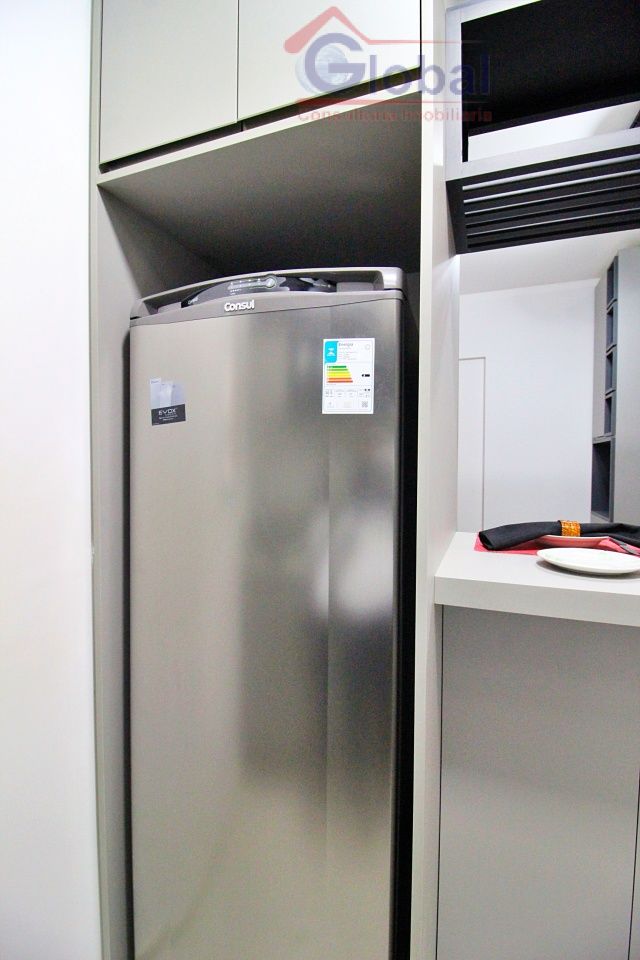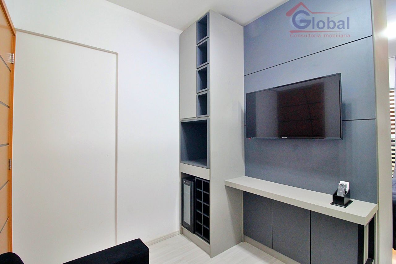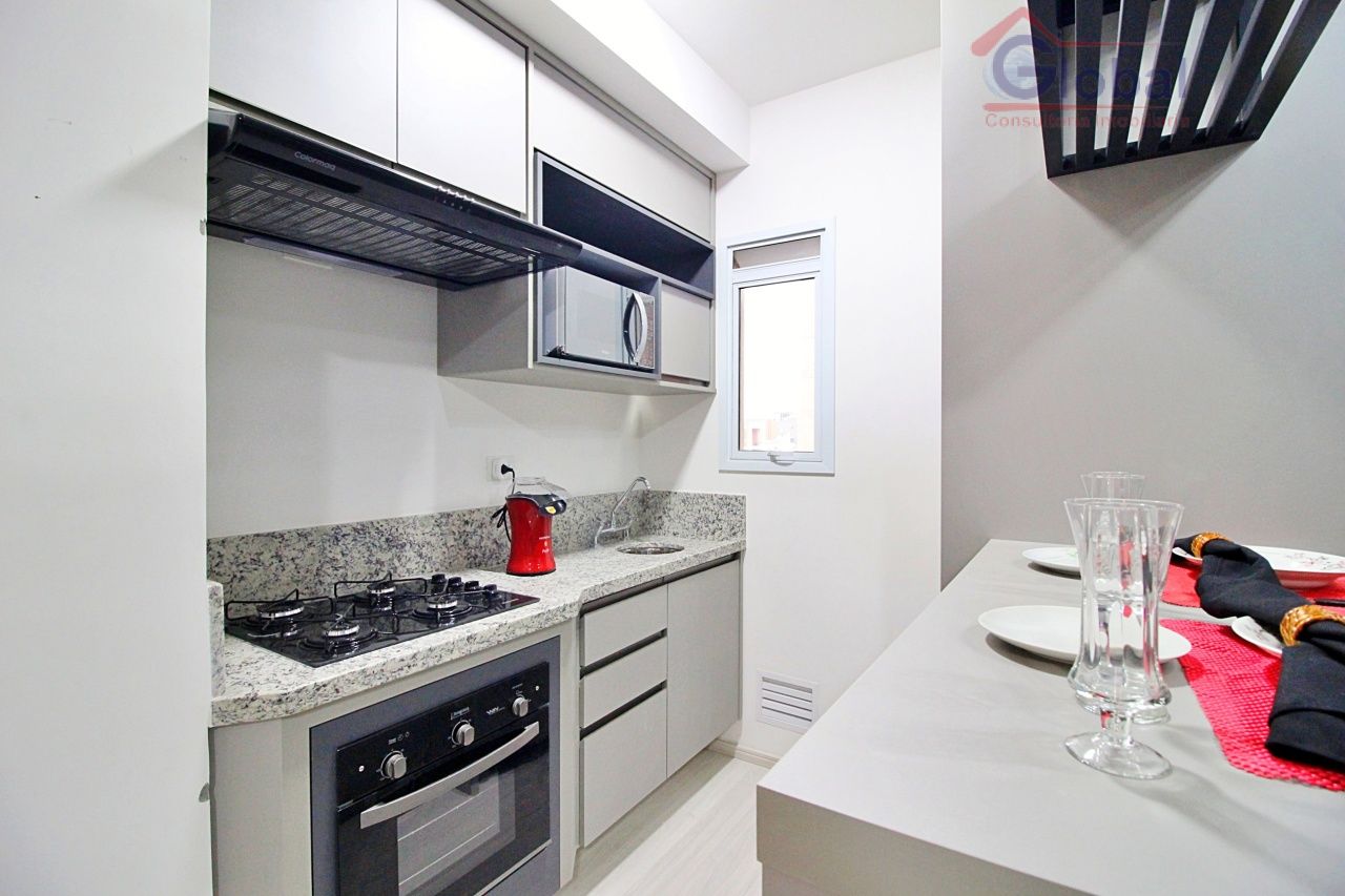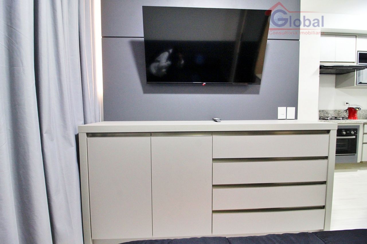 Loft mobiliado com armários embutidos no quarto, cozinha americana pl...