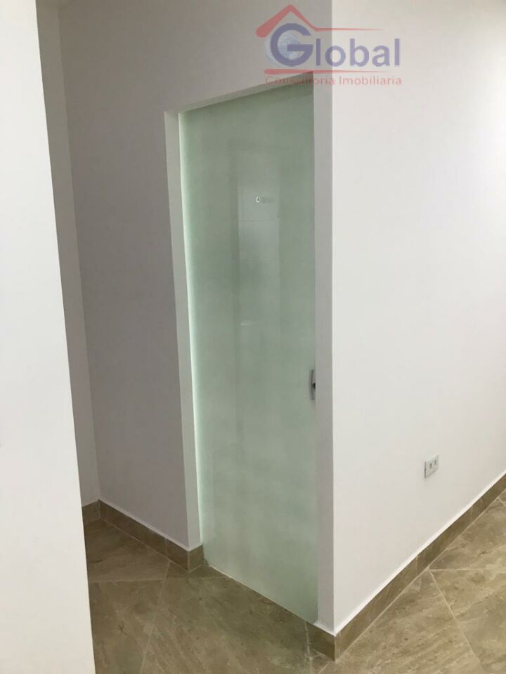 Espaço de 36 m², teto rebaixado com iluminação embutida, banheiro ...