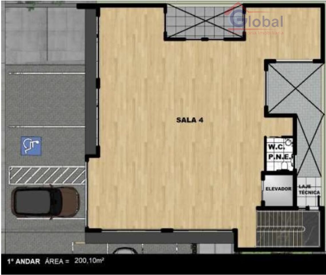 recepção, 5 salas de trabalho, 2 salas de reunião, 4 banheiros, inc...