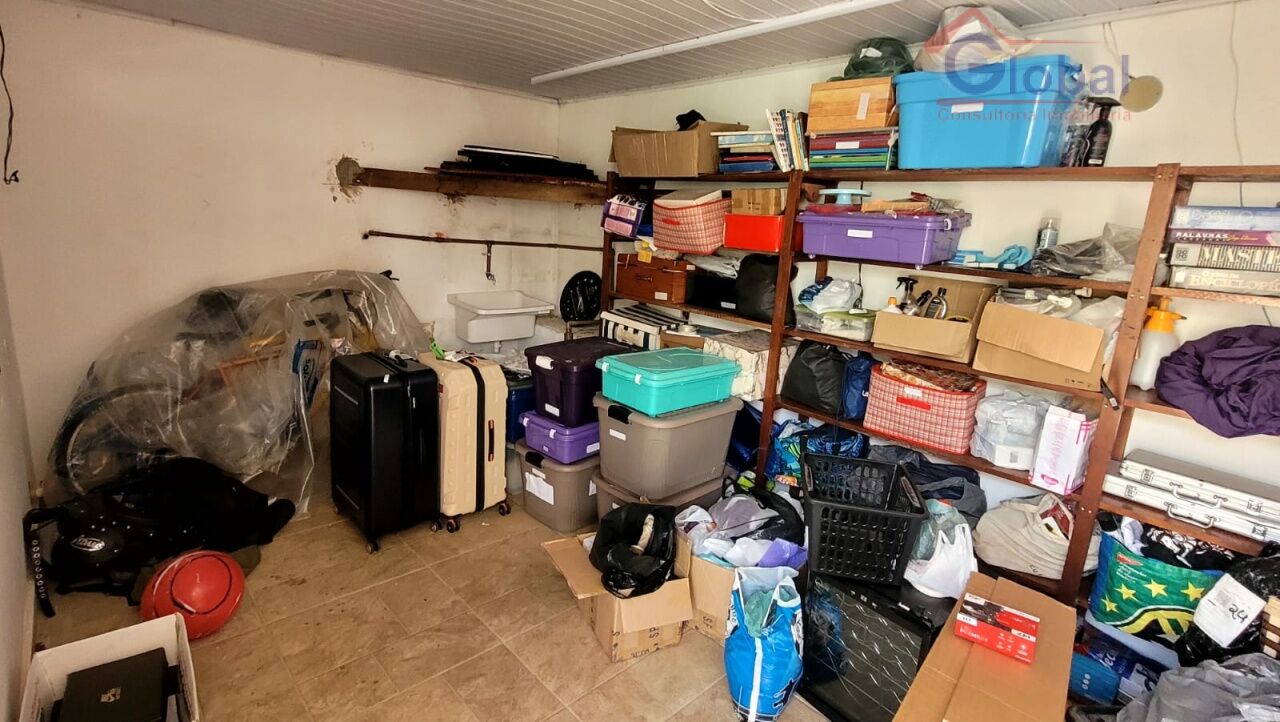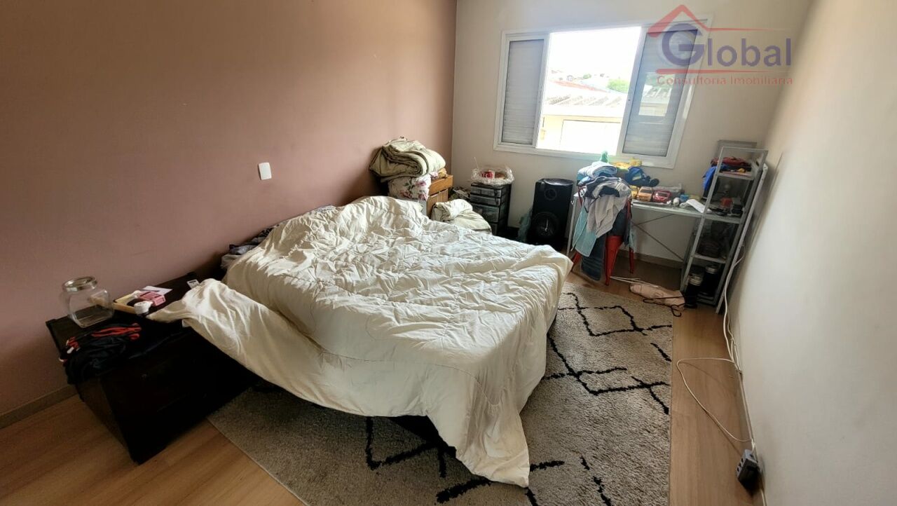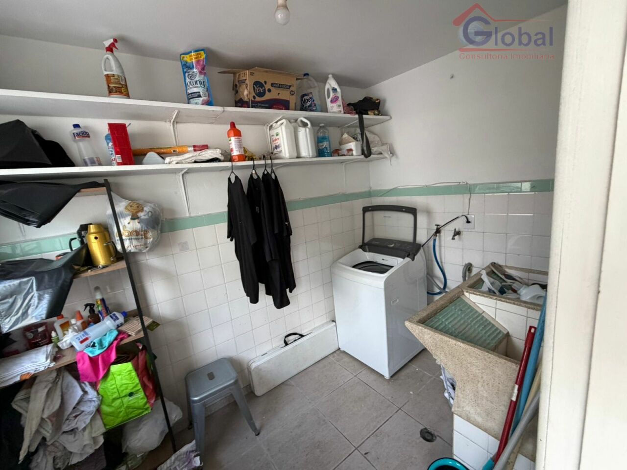 3 dormitórios, 1 banheiro social na parte de cima e na parte de baixo 1 sala ampla, cozinha ampla, 1 lavabo, um quintal pequeno, 1 deposito, 1 deposito para botijão de gás, 1 área de serviço, um banheiro, um quartinho e na parte de cima um quarto, entrada lateral e 2 vagas de garagem.