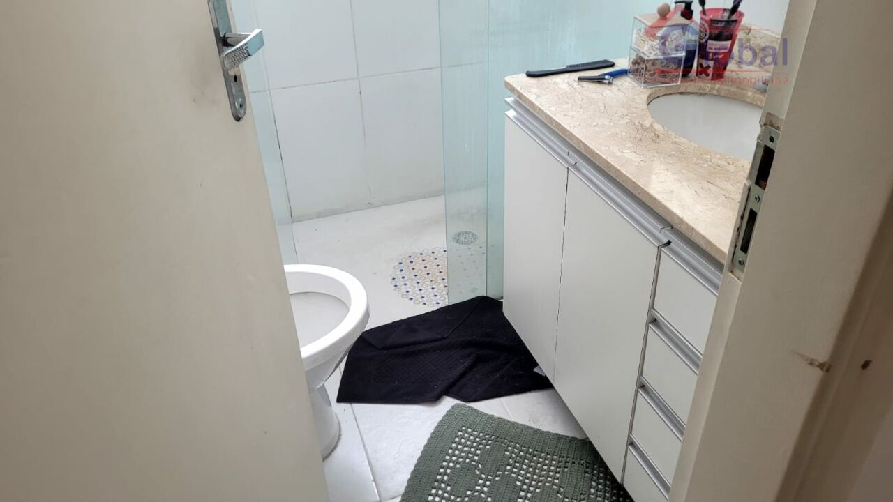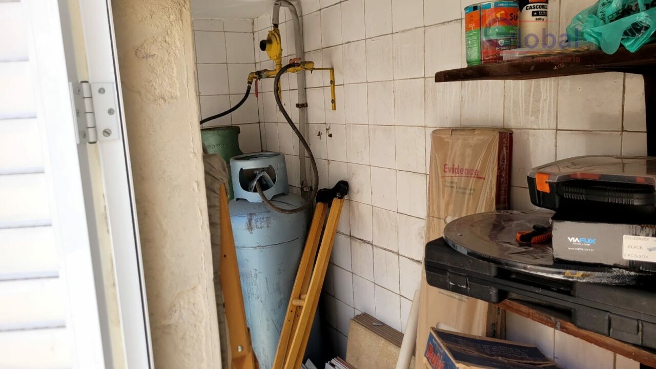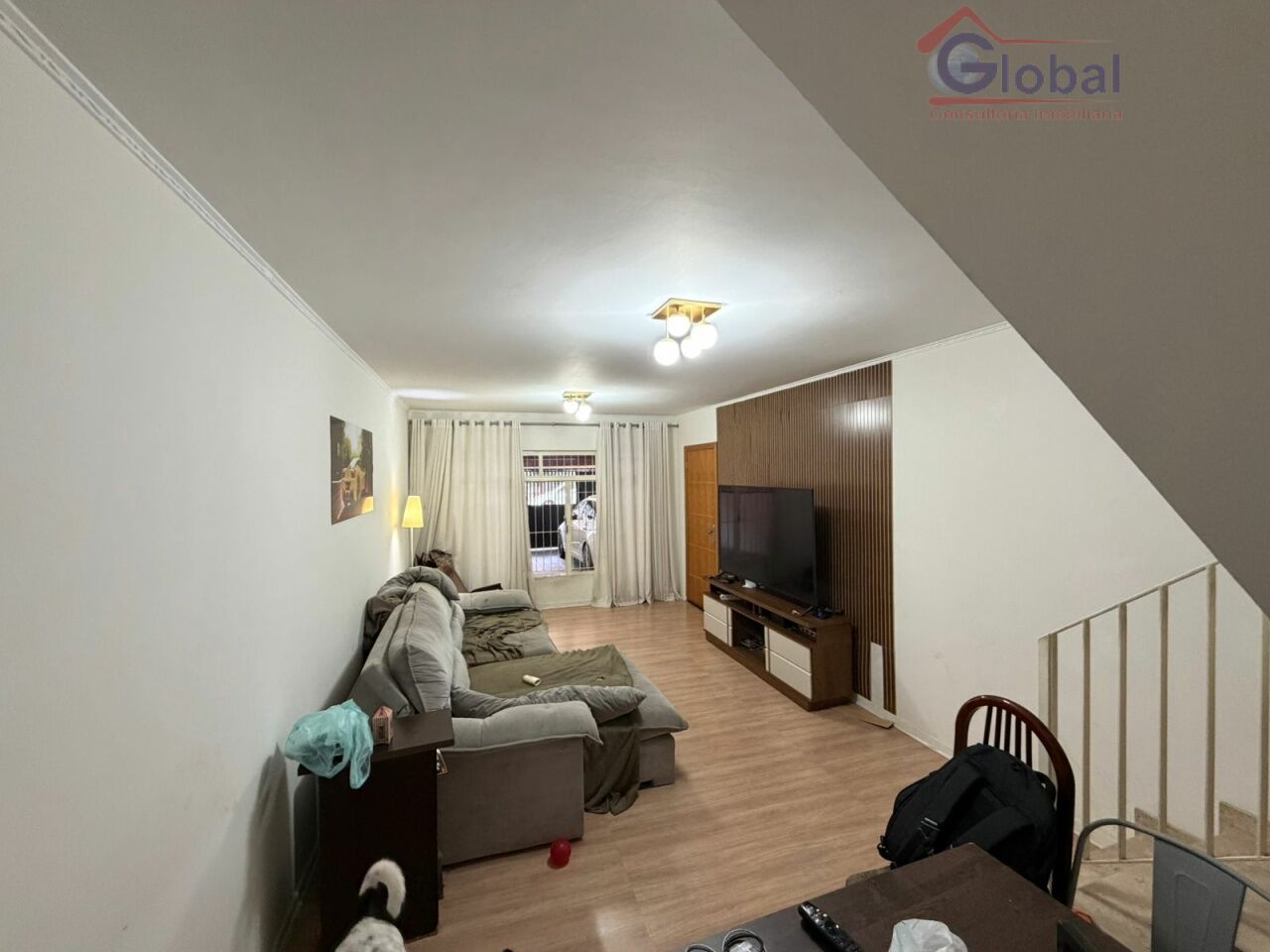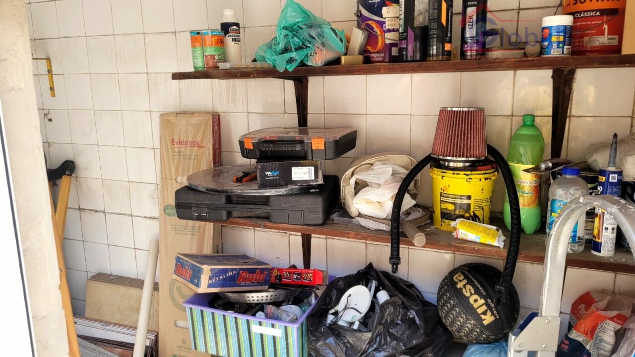 3 dormitórios, 1 banheiro social na parte de cima e na parte de baixo 1 sala ampla, cozinha ampla, 1 lavabo, um quintal pequeno, 1 deposito, 1 deposito para botijão de gás, 1 área de serviço, um banheiro, um quartinho e na parte de cima um quarto, entrada lateral e 2 vagas de garagem.